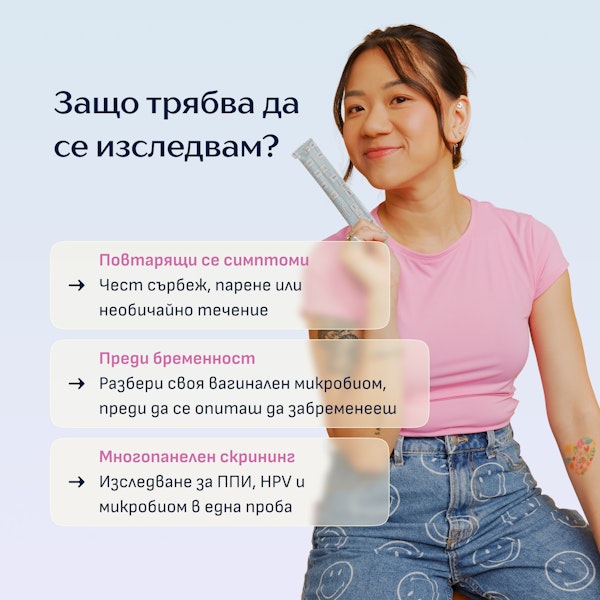 Винаги трябва да разговаряш с лекаря си, преди да решиш да закупиш диагностичен тест. Въпреки това, не всички лекари са експерти по вагиналния микробиом или имат време да следят най-новите изследвания (например, знаеше ли, че бактериалната вагиноза беше призната като ППИ едва през 2021 г.?)